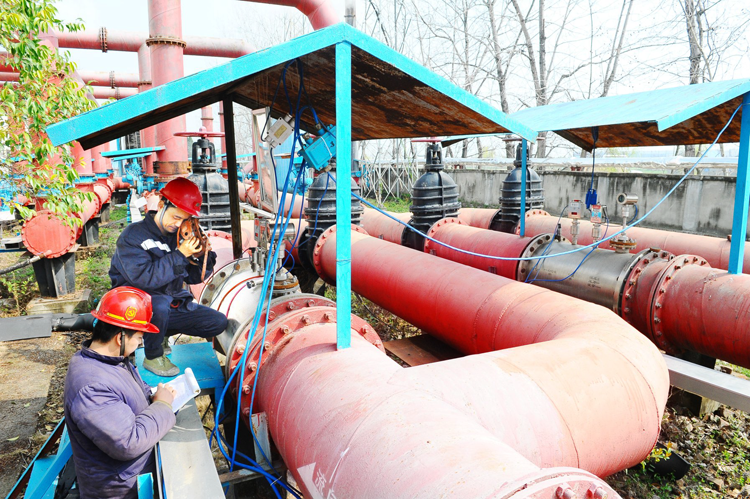 煤业公司潘二矿认真落实集团公司安全管理有关要求,扎实做好瓦斯抽采及设备管理工作,切实排查并消除隐患,确保万无一失。图为该矿抽排一区职工正在检查地面瓦斯输送管路。(王亮)
