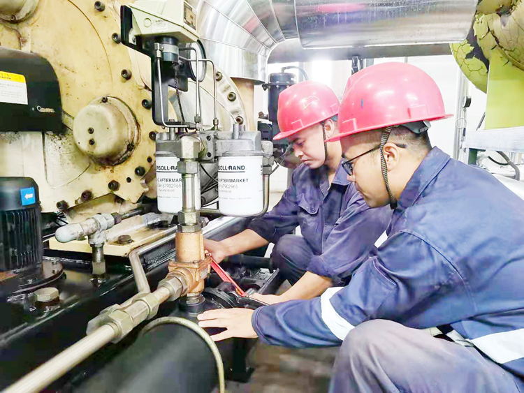 为进一步提高设备运行质量,保证矿井通风效果,近期,煤业公司张集矿超前做好地面压风机房设备检修维护工作,提前更换设备磨损件,消除设备安全故障,提高开机率。图为该矿供电一队职工对备用压风机进行检修维护。(吴运生 吴振杨 摄)
