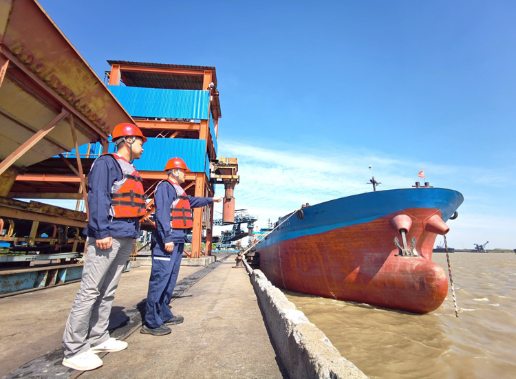 连日来,煤炭销售中心全面贯彻落实集团公司关于电煤保供的相关要求,以有力举措提升煤炭发运效率,确保重点用户煤炭供应。图为该中心裕溪口中转站职工正在等待船舶靠港,及时查验船舶水尺。(谢睿 摄)