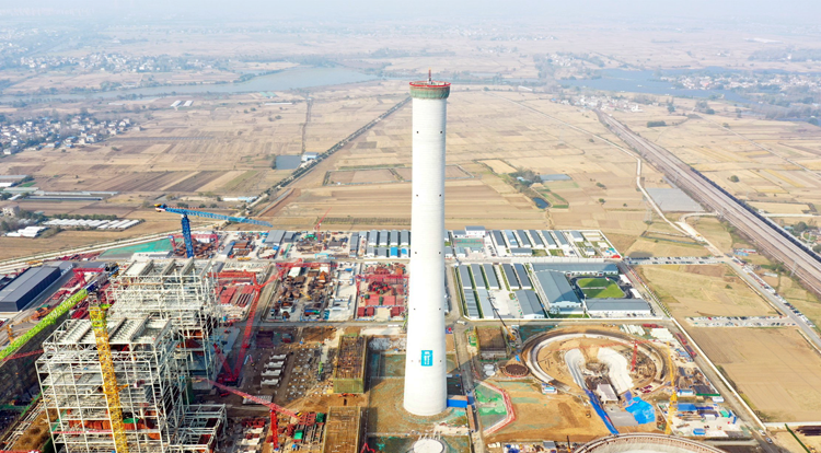 10月30日,电力集团潘集电厂项目一期工程烟囱外筒壁最后一节混凝土浇筑完成,标志着工程烟囱顺利到顶,这是继锅炉大板梁吊装后完成的又一重大节点工程。潘集电厂项目一期工程烟囱外筒壁总高230m,烟囱外筒壁顺利到顶,将为后续钢平台、钢内筒、脱硫区域施工及按期实现投产发电目标奠定坚实基础。图为航拍潘集电厂项目一期工程烟囱施工到顶的场景。(赵正夫 车平萍)