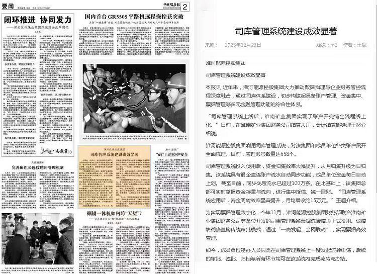 近年来,淮河能源控股集团大力推动数据治理与企业财务管控流程深度融合,通过司库体系建设,初步构建起具备账户管理、资金集中、票据管理等多元金融管理功能的综合性体系。