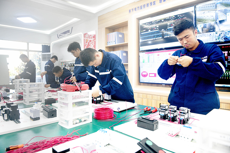 图为该矿学员正在工作室进行接线盘接线工艺练习。 (于晨晨 摄)