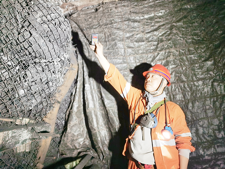 图为该矿职工正在检测工作面瓦斯含量。 (陈恩文 摄)