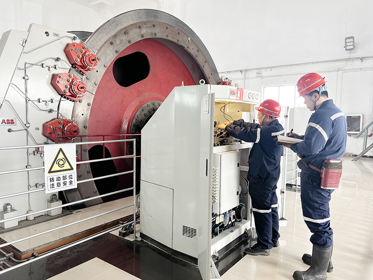 图为该矿机运队职工对副井提升系统液压站进行日常检修。(左琦 摄)