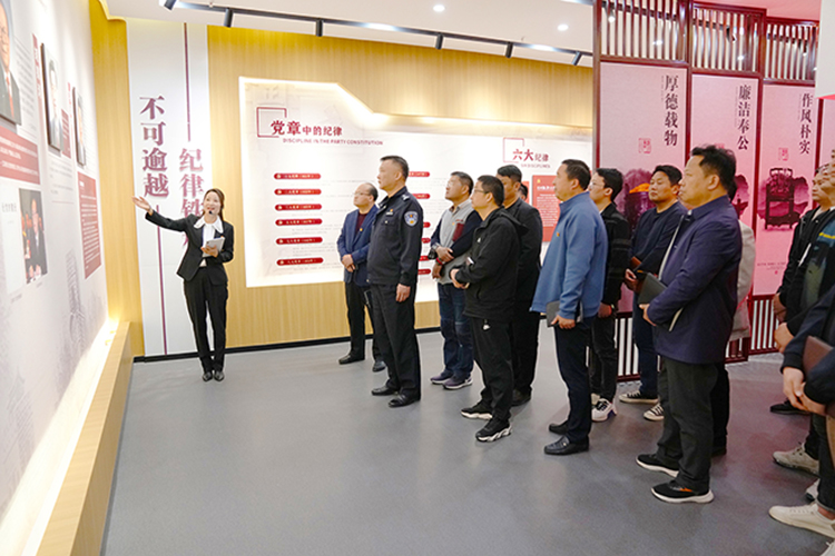 图为该馆解说员正在为新提职人员讲解党中央有关全面从严治党战略方针。